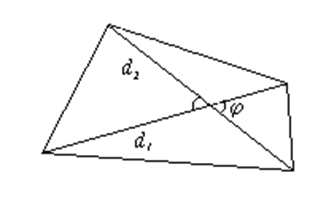 d1, d2 – диагонали; – угол между ними; S – площадь.
